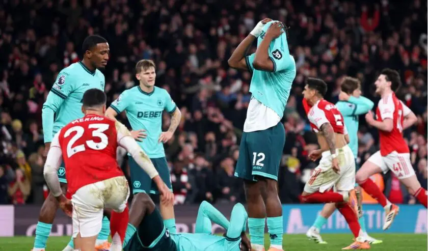 Tolu Arokodare sempat nyamakan skor buat Wolves di menit akhir, tapi drama ditutup dengan own-goal Mosquera. BolaSkor